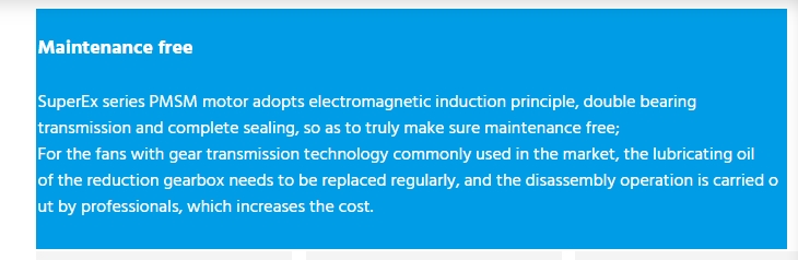 The maximum torque of the motor can reach 280N.m,which ensure the air volume and power of the fans.